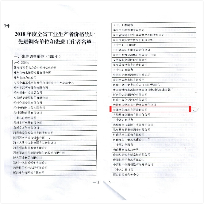 日前,自國(guó)家統(tǒng)計(jì)局河南調(diào)查總隊(duì)獲得消息,亞澳農(nóng)機(jī)獲得2018年度全省工業(yè)生產(chǎn)者價(jià)格統(tǒng)計(jì)先進(jìn)調(diào)查單位。