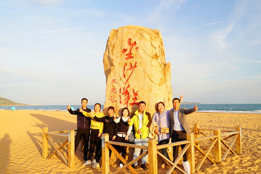 上午的參觀學(xué)習(xí)讓每一個人都長了見識,開闊了眼界。下午一行人來到了號稱“亞洲第一灘”的黃島金沙灘。黃島金沙灘位于黃海之濱,色澤如金,故稱“金沙灘”。是我國沙質(zhì)最細(xì)、面積最大、風(fēng)景最美的沙灘之一。