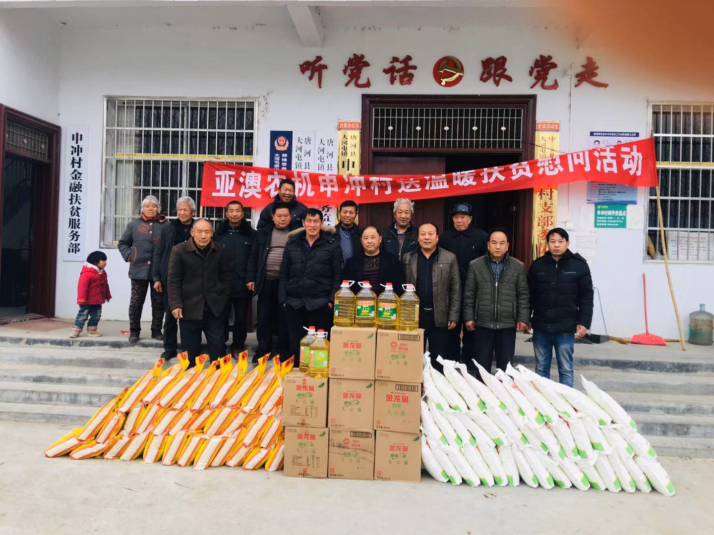 臨近春節(jié),2020年 1月4日在公司總經(jīng)理的授意下,由公司總經(jīng)理助理郭靖親率公司員工帶著米、面、油等生活物資,到申沖村開展送溫暖扶貧慰問活動(dòng)。