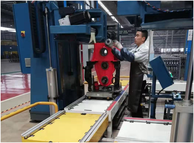 貧困戶、聾啞人楊磊在箱體裝配線現(xiàn)場工作