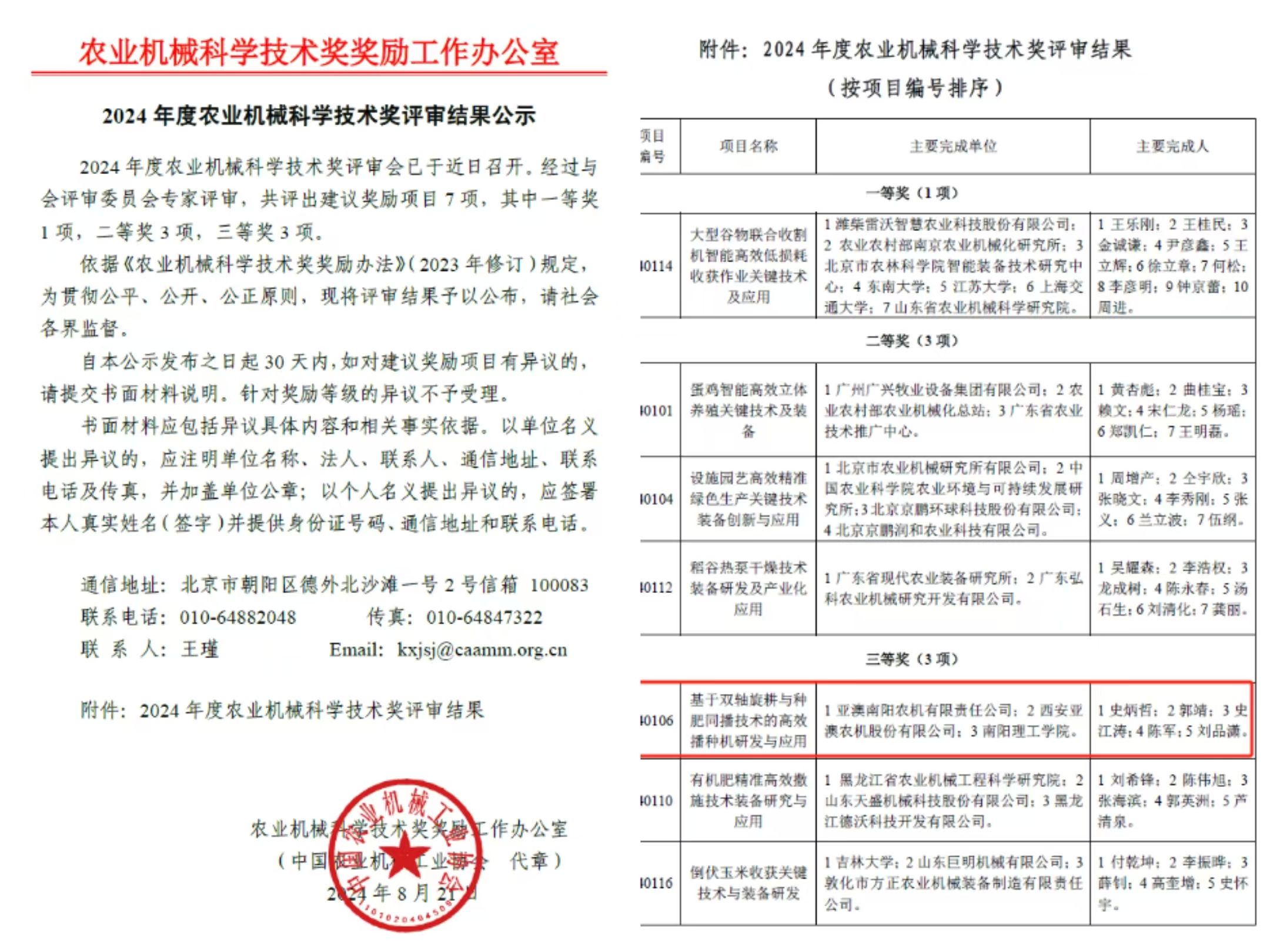 在科技與農(nóng)業(yè)深度融合的時(shí)代浪潮中,一則振奮人心的喜訊傳來(lái) ——亞澳農(nóng)機(jī)成功榮獲農(nóng)業(yè)機(jī)械科學(xué)技術(shù)獎(jiǎng)!