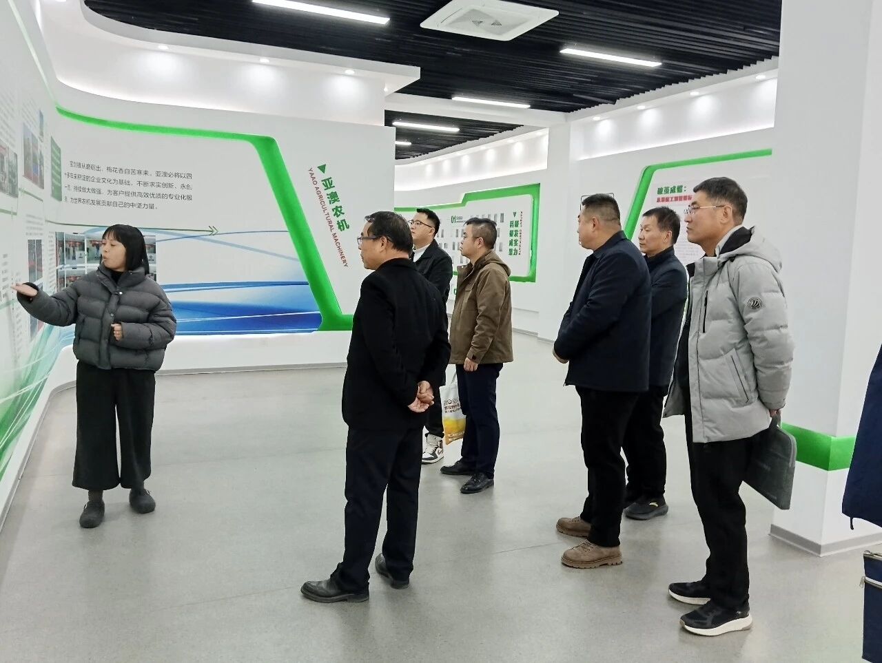 考察團(tuán)先后走進(jìn)企業(yè)文化展廳、產(chǎn)品展廳及核心生產(chǎn)線,通過實(shí)地觀摩智能農(nóng)機(jī)裝配流程、近距離查看新型農(nóng)機(jī)裝備性能、現(xiàn)場(chǎng)問詢技術(shù)研發(fā)細(xì)節(jié)等方式,全方位了解企業(yè)在生產(chǎn)制造、技術(shù)創(chuàng)新、文化建設(shè)等方面的發(fā)展成果。