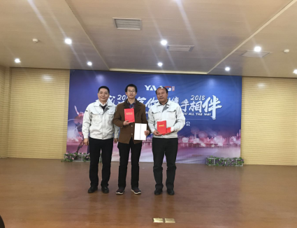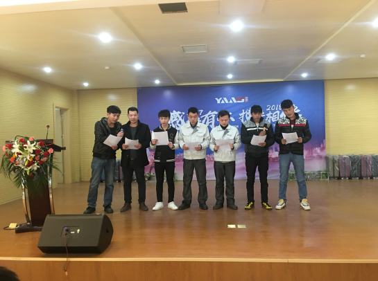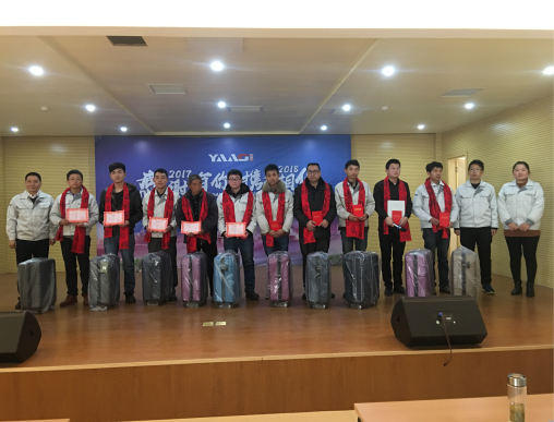 年度先進個人獲得者為石強、陳朝龍、王文飛、王欣、楊常林、寧浩、鄭新春、田生文、白拴禮、趙自學,優(yōu)秀班組長周長金,獎品Aksen旅行箱